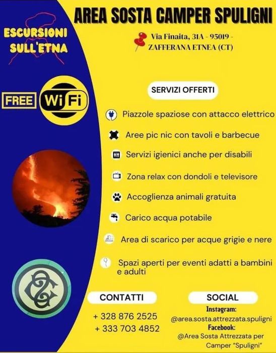 L’Area Sosta Attrezzata per Camper, roulotte e tende da campeggio "Spuligni", situata a Zafferana Etnea, in provincia di Catania, rappresenta un importante punto di riferimento